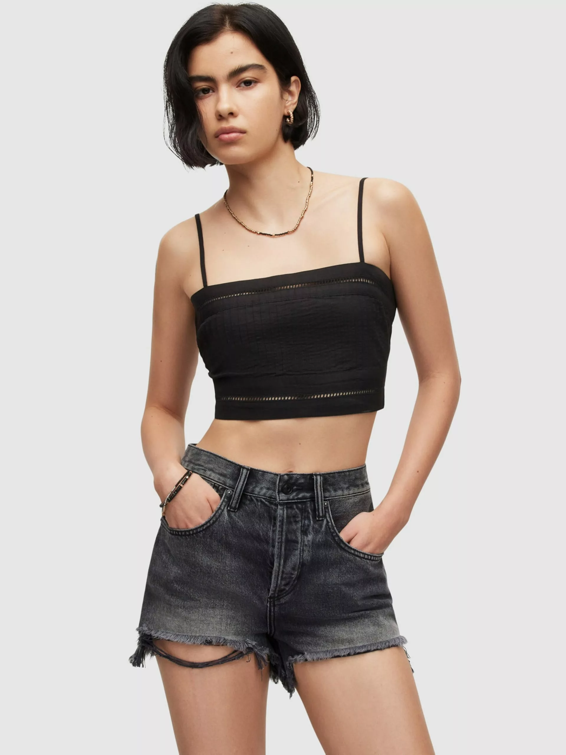 AllSaints Crop Tops Haut WHITLEY Femme Noir